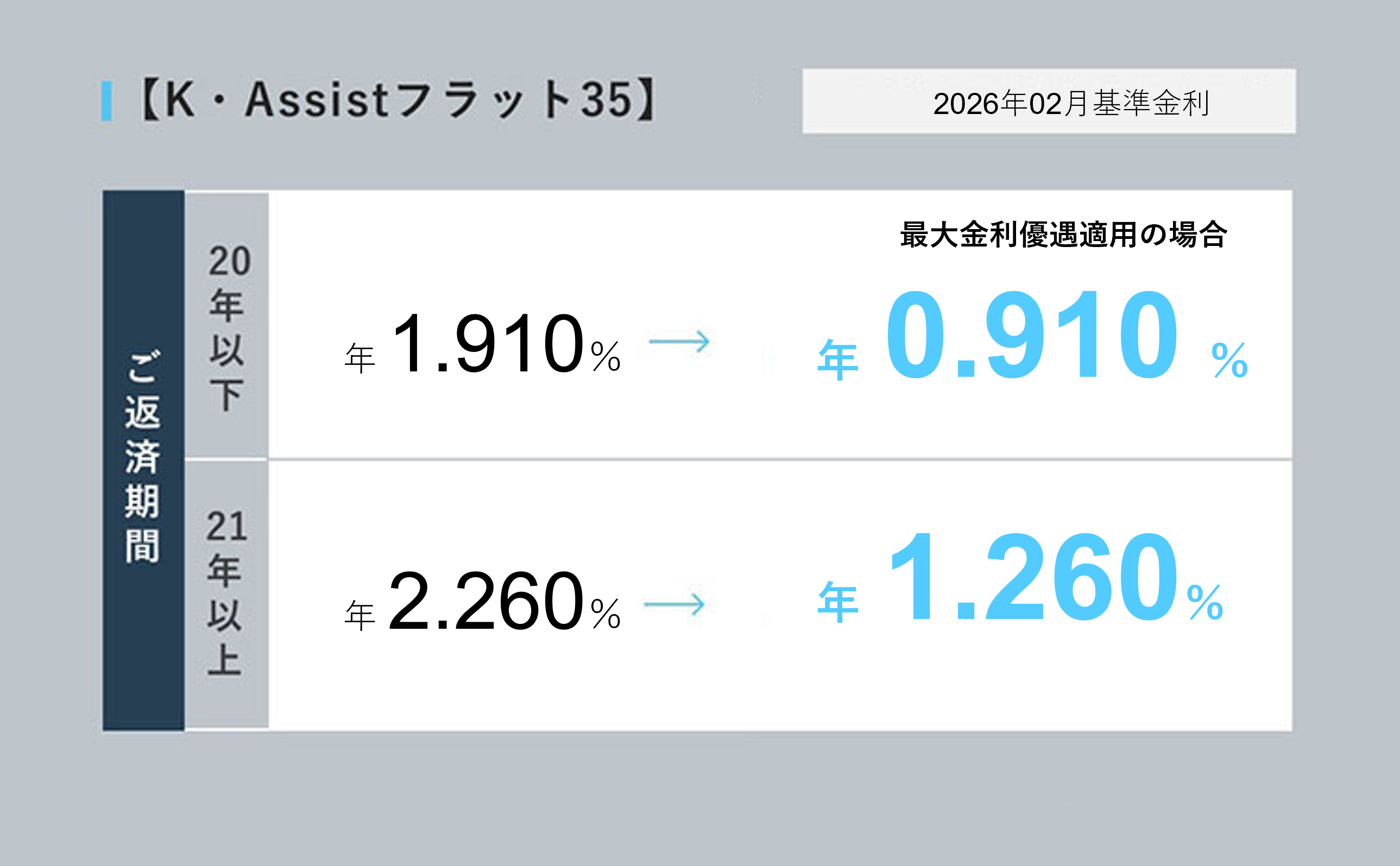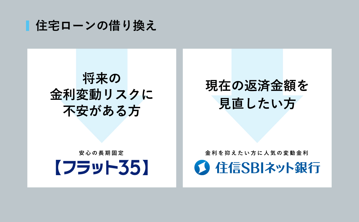 固定金利の【フラット35】、ネット銀行の変動金利をご用意しております。